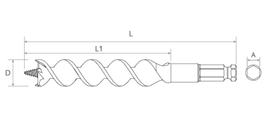توفر نقطة لولبية ذاتية التغذية ثقبًا سريعًا في الأخشاب الصلبة والناعمة، من أجل حفر دقيق وسهل.